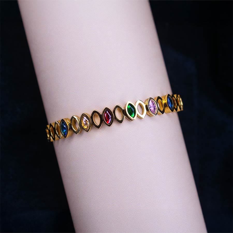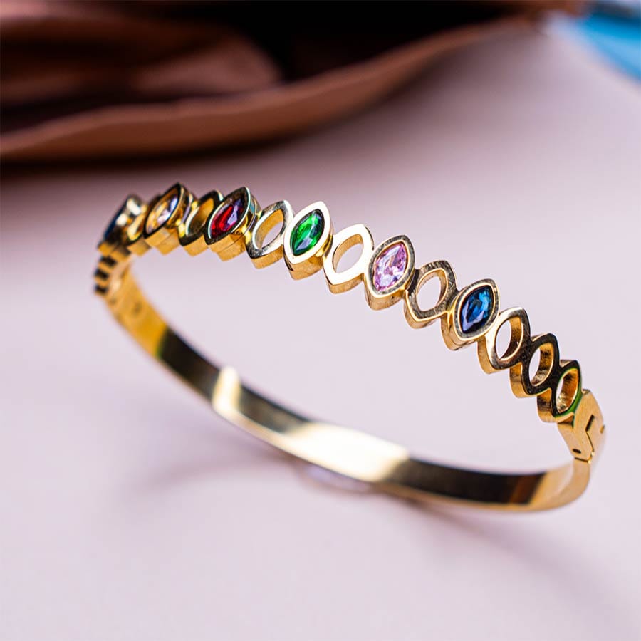 Fairylite Colored Rhinestone Zircon Stainless Steel Bangle – Elegant & Durable