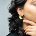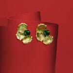 Fairylite Luxury Gold-Plated Floral Earrings with Green Gemstone Accent