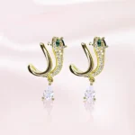 Fairylite Serpent Luxe Earrings – Gold Snake Earrings with Green Gem Eyes & CZ Drop