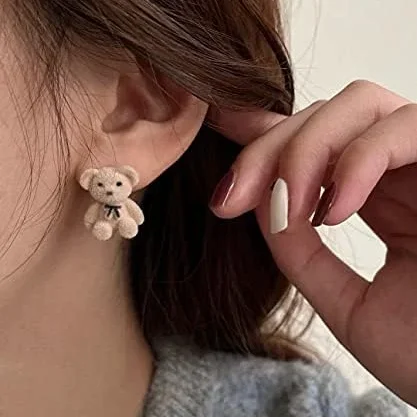 Teddy Bear Brown Contemporary Stud Earrings
