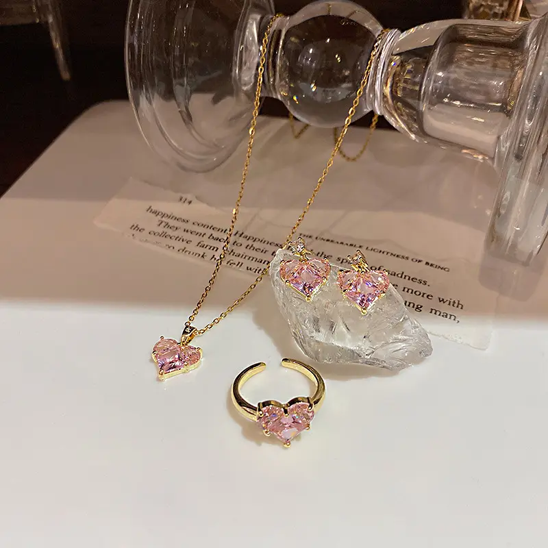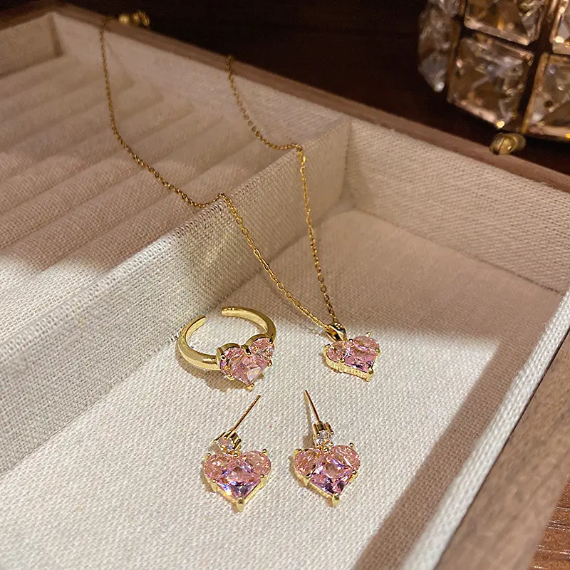 FairyLite Mesmerizing Pink Jewelry Set – Earrings, Ring & Pendant