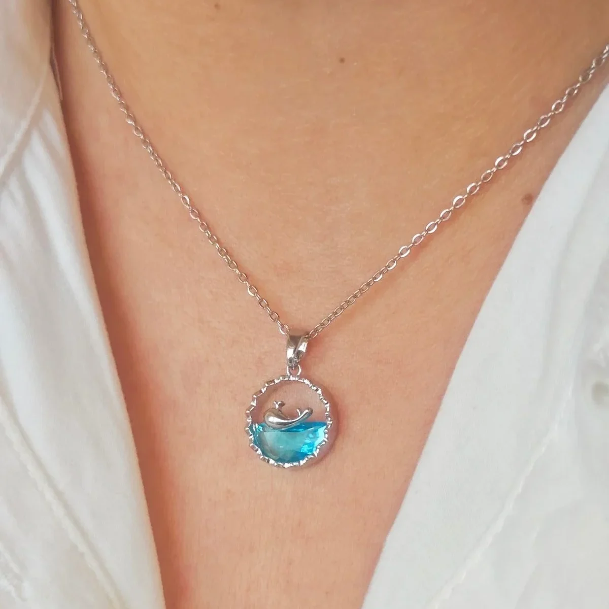 Blue Whale Zircon Pendant Necklace – Elegant Ocean-Inspired Jewelry
