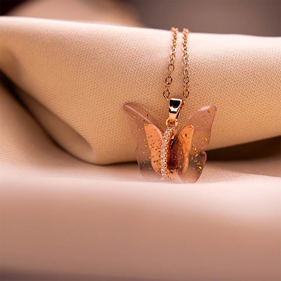 - Elegant Butterfly Design – Delicate resin-crafted butterfly pendant with a sparkling center accent.