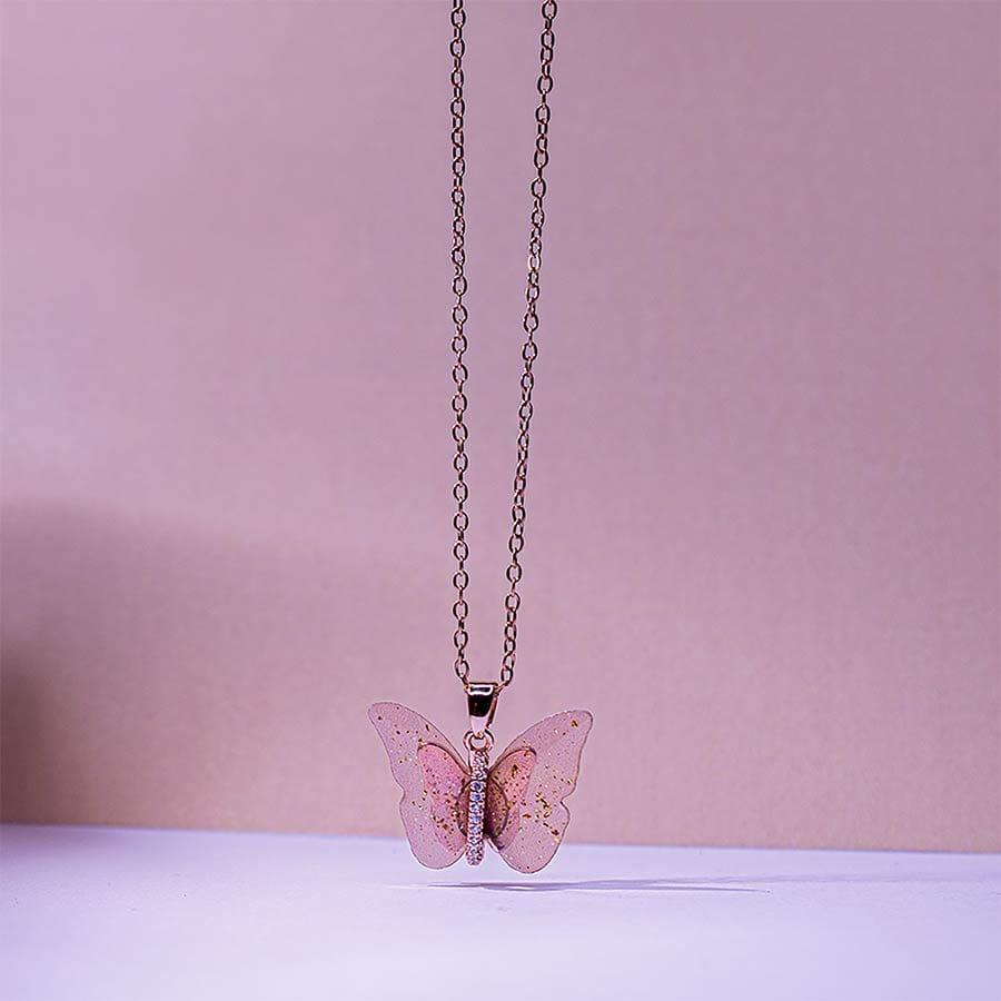 Fairylite Butterfly Resin Pendant – Rose Gold Necklace with CZ Accent