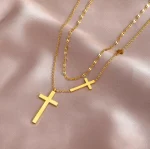 Elevate your style with this gold cross chain necklace, featuring a layered design with two elegant cross pendants. Crafted from high-quality, anti-tarnish material, this necklace is a symbol of faith and fashion. Whether for everyday wear or special occasions, this timeless piece is perfect for both men and women.