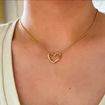 Gold Heart Necklace – Minimalist Hollow Pendant, Elegant & Anti-Tarnish