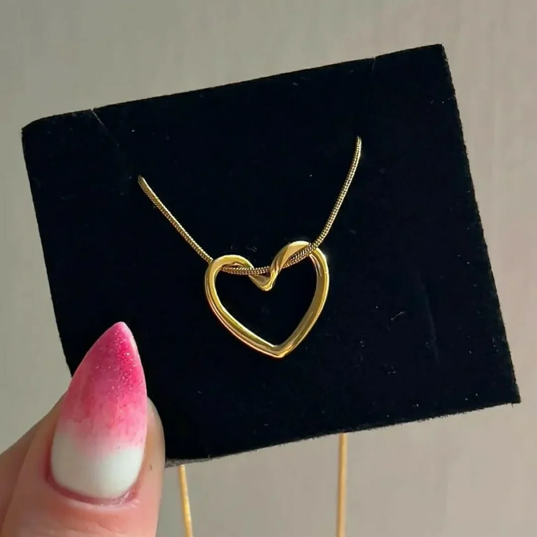 Gold Heart Necklace – Minimalist Hollow Pendant, Elegant & Anti-Tarnish